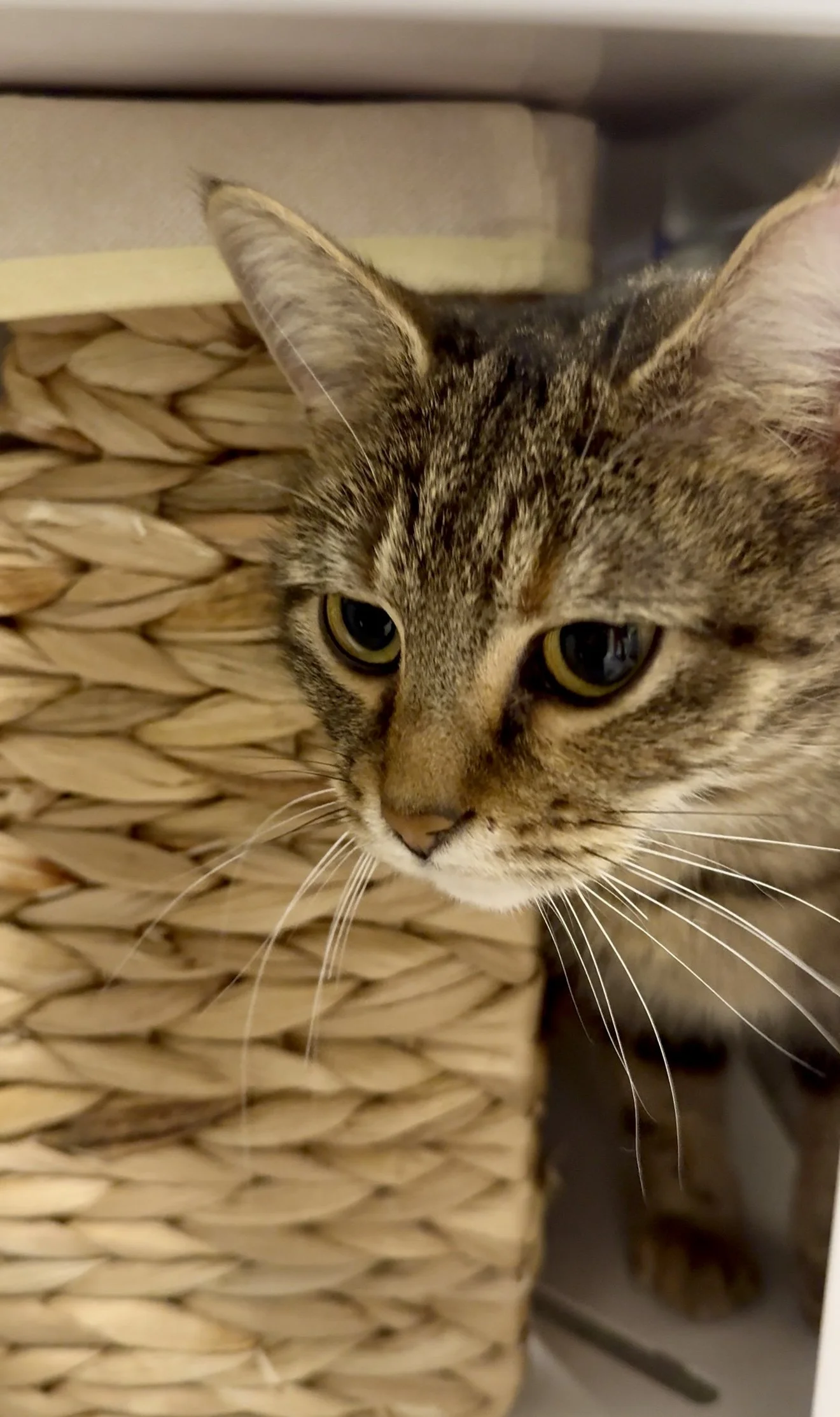 Hissica is an incredibly sweet, delightfully chatty girl who adores attention. She’ll even sit up on her hind legs and stretch to make sure you notice her. She’d be perfectly content curled in a cozy corner bed in your office—napping peacefully until she follows you to the kitchen for an afternoon snack, then dutifully returning to her spot. She’s a perfect 10/10 roommate for someone looking for a low-key companion who enjoys company. She has no litter-box issues and, at present, no known health concerns.