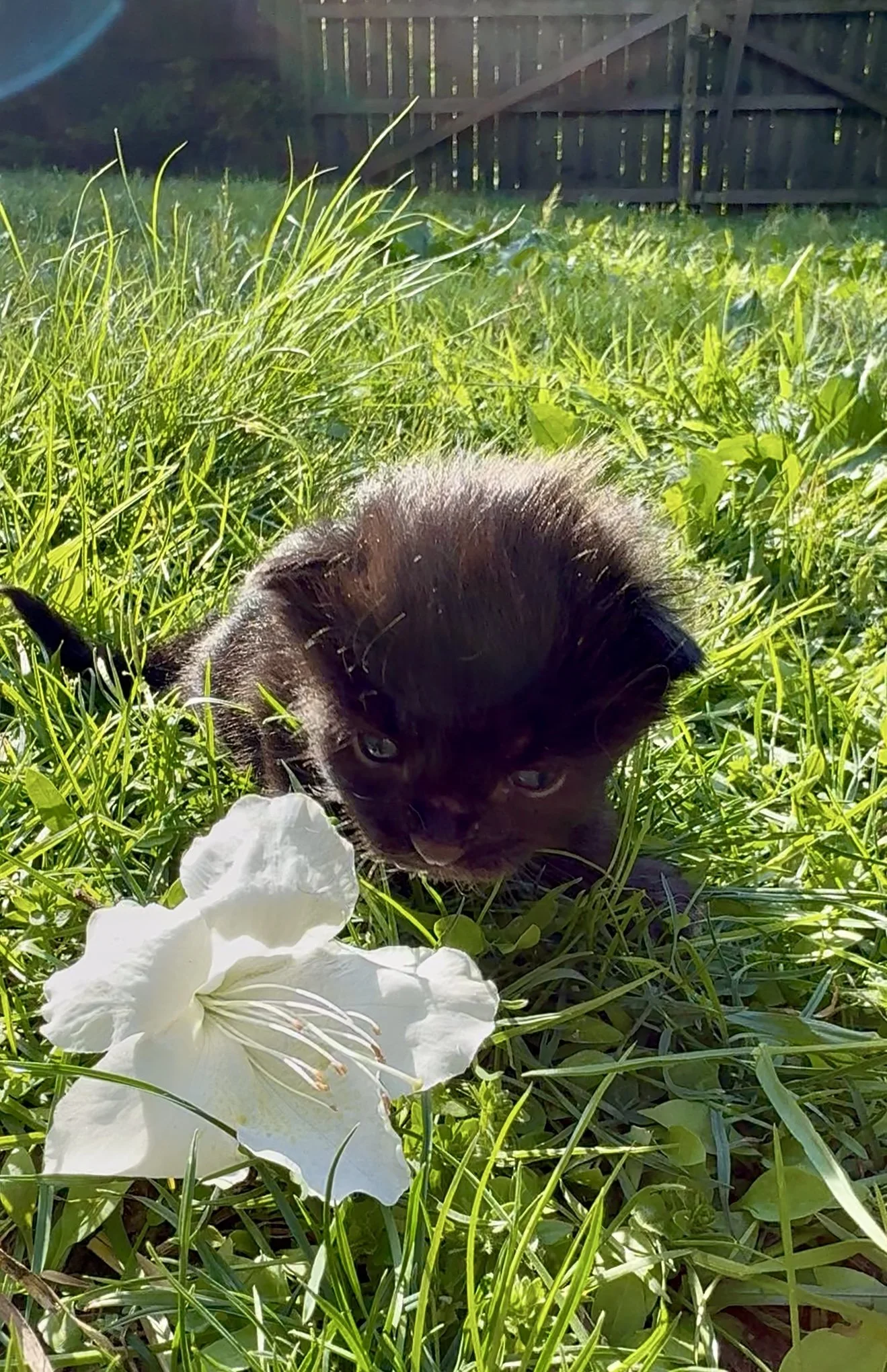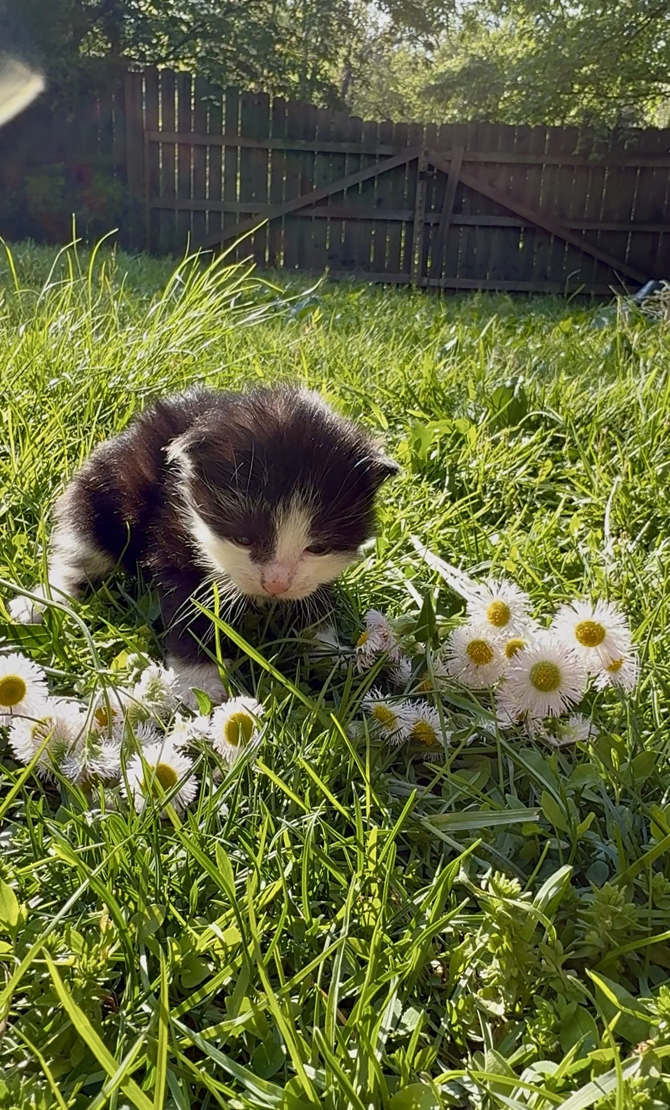 This beautiful girl was such a devoted mama that she was trapped within moments of hearing her babies. Her kittens—Iris (grey tabby), Marigold (brown tabby), Lupin (black), and Daisy (tuxedo)—have all since been adopted into loving homes. Prior to her spay, and right after her babies were weaned, Flora even helped raise two litters of orphaned kittens and an orphaned opossum. This mama truly did so much for so many little ones.